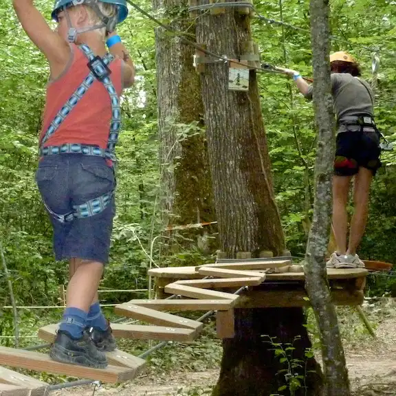 Een erg leuke activiteit waarbij jullie via een speciaal aangelegd parcours in de bomen naar hartenlust mogen klimmen en hoogtes kunnen overwinnen. Je wordt door de mensen van Les Zaccroches netjes in een harnas gehesen en zit door middel van een kabel vast, zodat je veilig het parcours kunt afleggen.